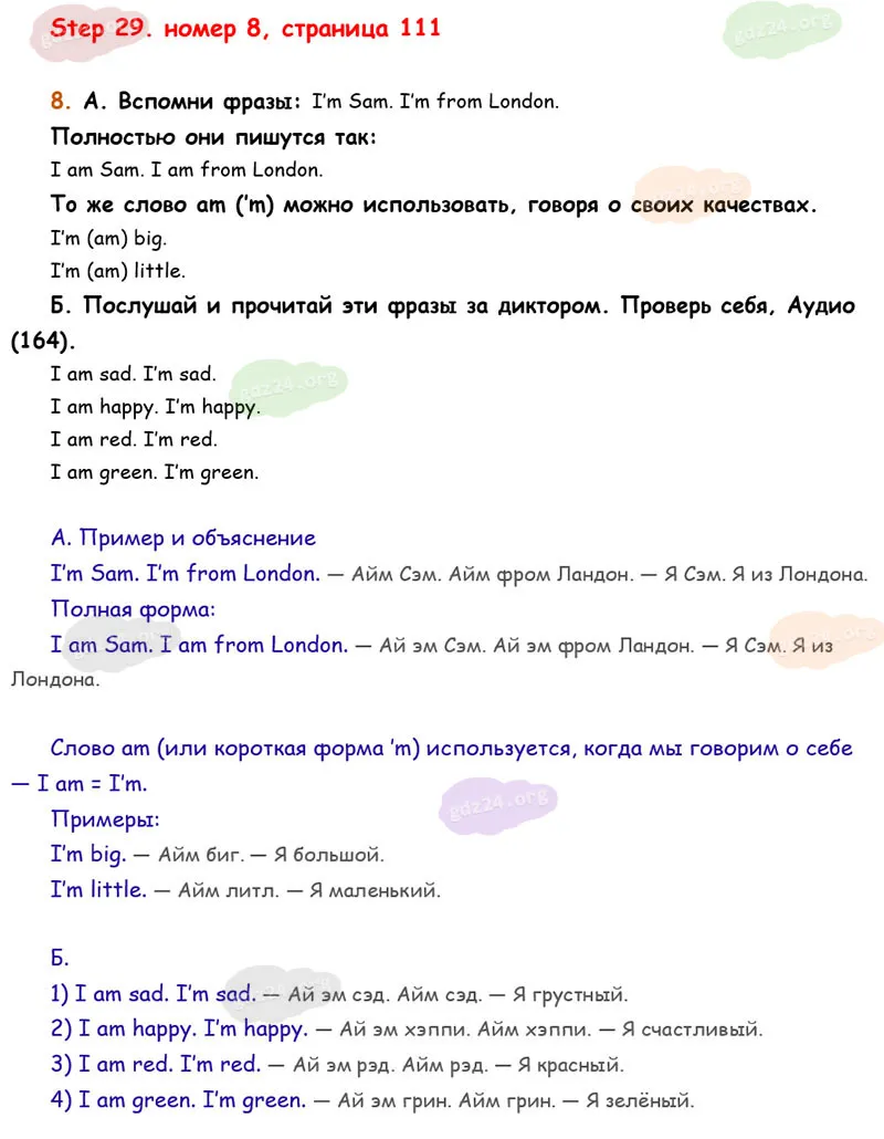 Подробные ответы к 8 заданию на 111 странице учебника Rainbow English. О. В. Афанасьева, И. В. Михеева 2026 года ФГОС, 2 класс 1 часть. Step 29.