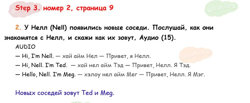 Подробные ответы к 2 заданию на 9 странице учебника Rainbow English. О. В. Афанасьева, И. В. Михеева 2026 года ФГОС, 2 класс 1 часть. Step 3.