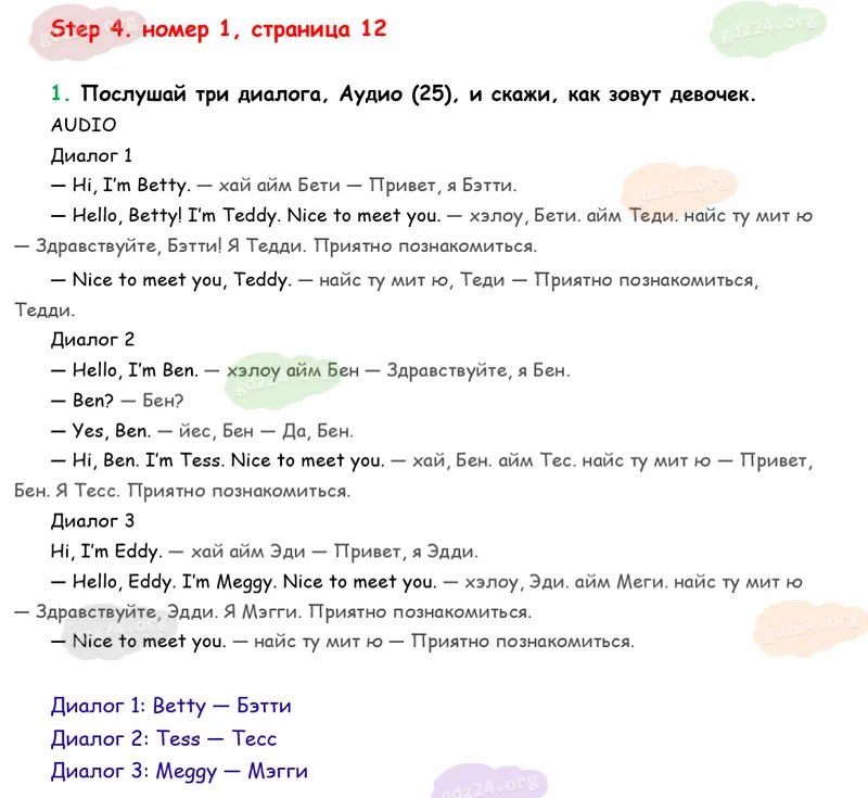 Подробные ответы к 1 заданию на 12 странице учебника Rainbow English. О. В. Афанасьева, И. В. Михеева 2026 года ФГОС, 2 класс 1 часть. Step 4.