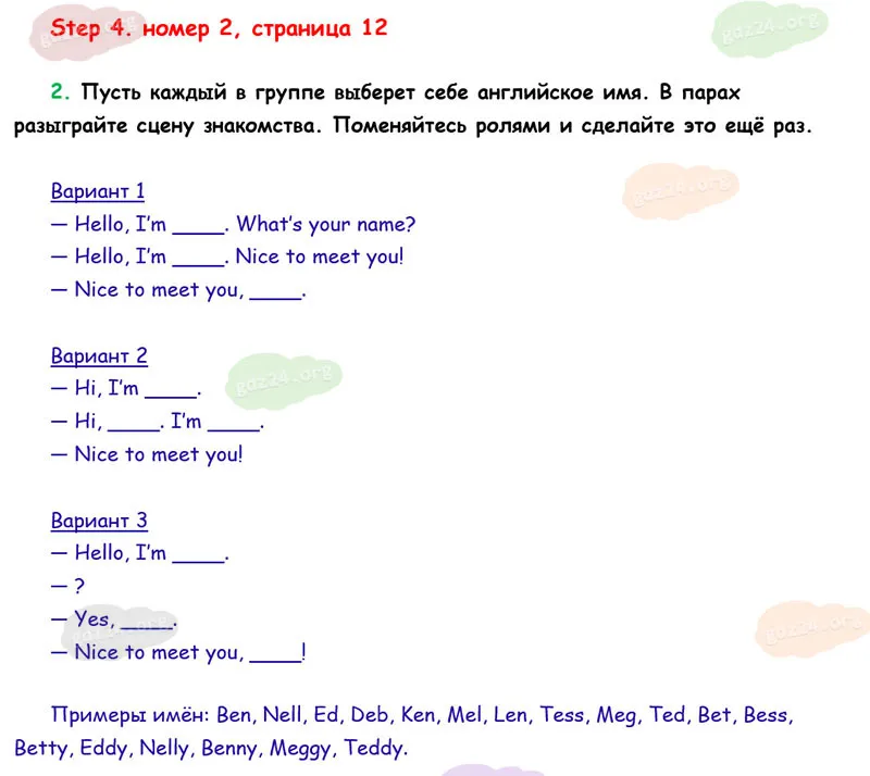 Подробные ответы к 2 заданию на 12 странице учебника Rainbow English. О. В. Афанасьева, И. В. Михеева 2026 года ФГОС, 2 класс 1 часть. Step 4.