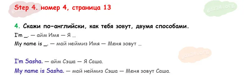 Подробные ответы к 4 заданию на 13 странице учебника Rainbow English. О. В. Афанасьева, И. В. Михеева 2026 года ФГОС, 2 класс 1 часть. Step 4.
