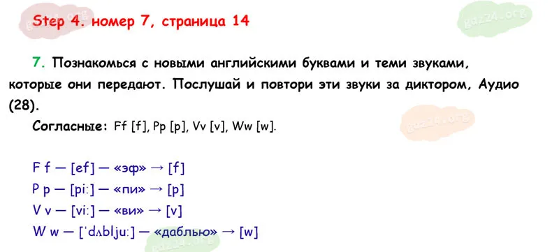 Подробные ответы к 7 заданию на 14 странице учебника Rainbow English. О. В. Афанасьева, И. В. Михеева 2026 года ФГОС, 2 класс 1 часть. Step 4.