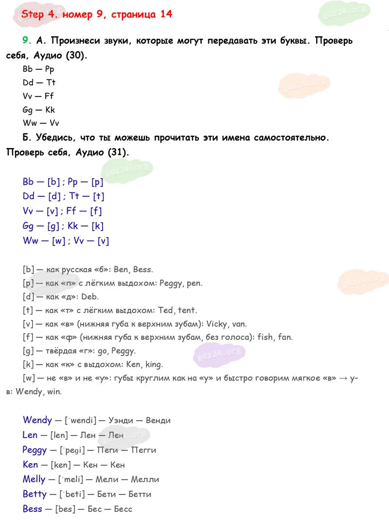 Подробные ответы к 9 заданию на 14 странице учебника Rainbow English. О. В. Афанасьева, И. В. Михеева 2026 года ФГОС, 2 класс 1 часть. Step 4.