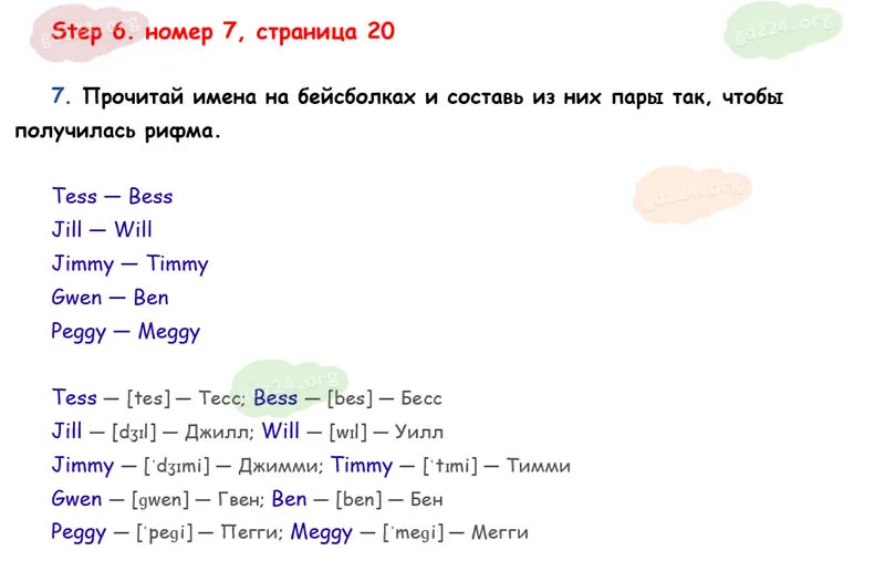 Подробные ответы к 7 заданию на 20 странице учебника Rainbow English. О. В. Афанасьева, И. В. Михеева 2026 года ФГОС, 2 класс 1 часть. Step 6.