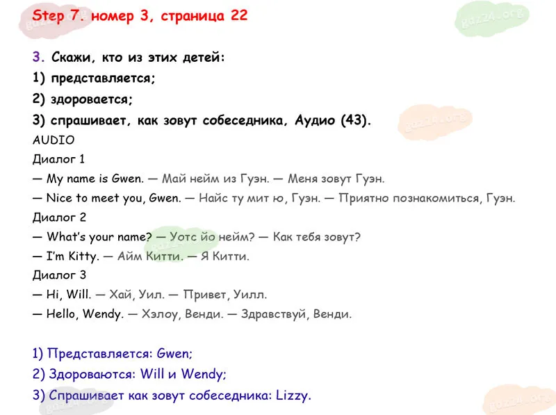 Подробные ответы к 3 заданию на 22 странице учебника Rainbow English. О. В. Афанасьева, И. В. Михеева 2026 года ФГОС, 2 класс 1 часть. Step 7.