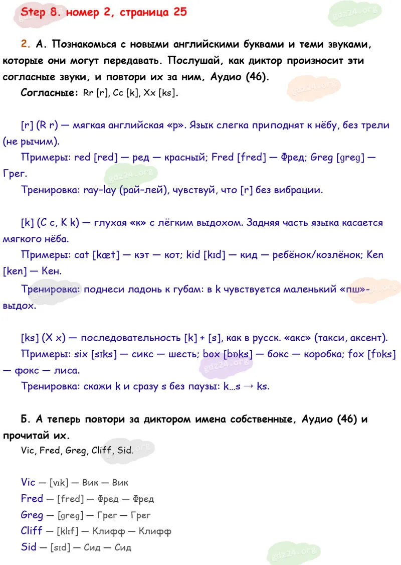 Подробные ответы к 2 заданию на 25 странице учебника Rainbow English. О. В. Афанасьева, И. В. Михеева 2026 года ФГОС, 2 класс 1 часть. Step 8.
