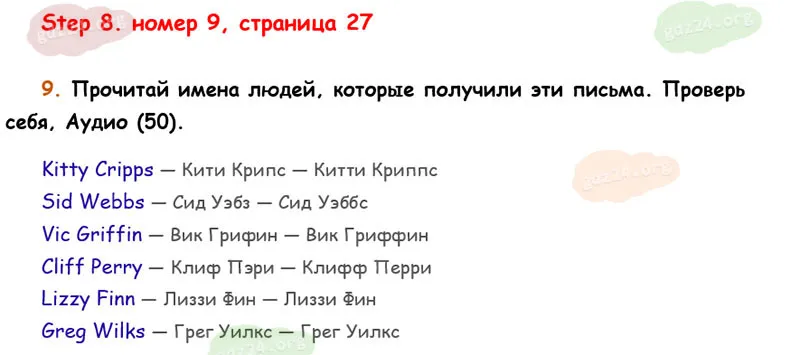 Подробные ответы к 9 заданию на 27 странице учебника Rainbow English. О. В. Афанасьева, И. В. Михеева 2026 года ФГОС, 2 класс 1 часть. Step 8.