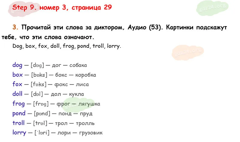 Подробные ответы к 3 заданию на 29 странице учебника Rainbow English. О. В. Афанасьева, И. В. Михеева 2026 года ФГОС, 2 класс 1 часть. Step 9.