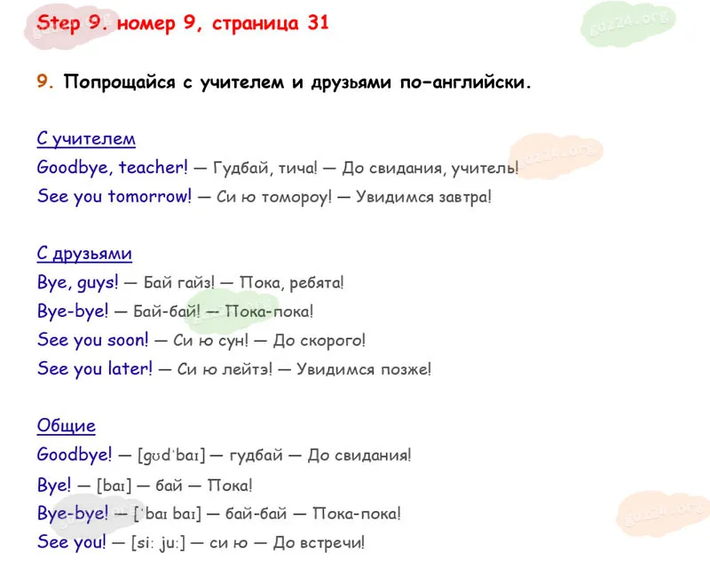 Подробные ответы к 9 заданию на 31 странице учебника Rainbow English. О. В. Афанасьева, И. В. Михеева 2026 года ФГОС, 2 класс 1 часть. Step 9.