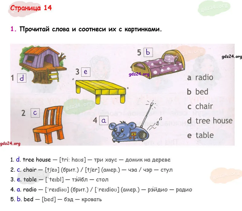 Подробные ответы к 1 заданию на 14 странице рабочей тетради Spotlight. Английский в фокусе. Н. И. Быкова, Д. Дули, М. Д. Поспелова и др. 2025 года ФГОС, 2 класс. My Home!