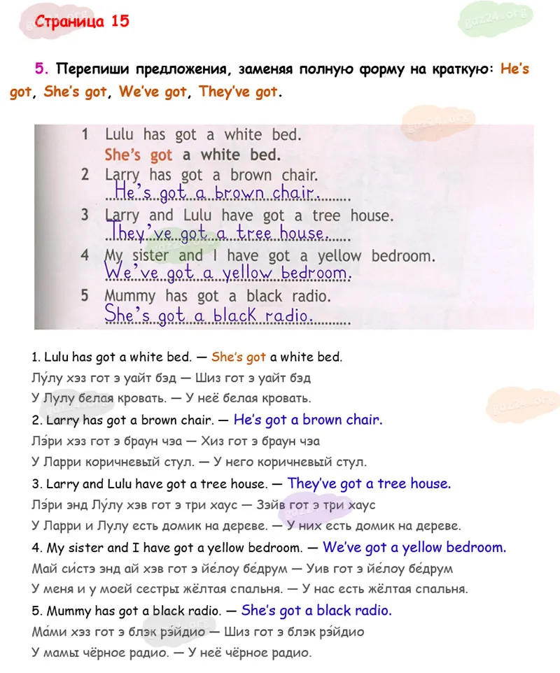 Перепиши предложения, заменяя полную форму на краткую: He’s got, She’s got, We’ve got, They’ve got.