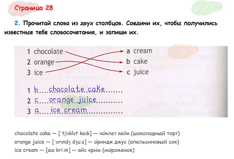 Подробные ответы к 2 заданию на 28 странице рабочей тетради Spotlight. Английский в фокусе. Н. И. Быкова, Д. Дули, М. Д. Поспелова и др. 2025 года ФГОС, 2 класс. 6. My Favorite Food!