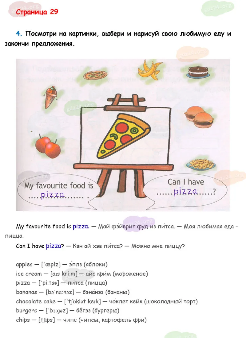 Подробные ответы к 4 заданию на 29 странице рабочей тетради Spotlight. Английский в фокусе. Н. И. Быкова, Д. Дули, М. Д. Поспелова и др. 2025 года ФГОС, 2 класс. 6. My Favorite Food!