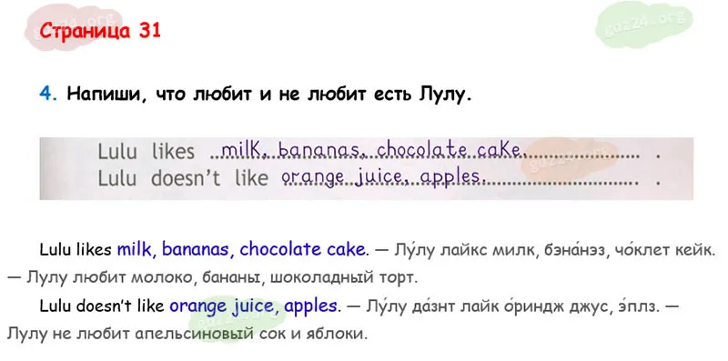 Подробные ответы к 4 заданию на 31 странице рабочей тетради Spotlight. Английский в фокусе. Н. И. Быкова, Д. Дули, М. Д. Поспелова и др. 2025 года ФГОС, 2 класс. I ❤️ English!