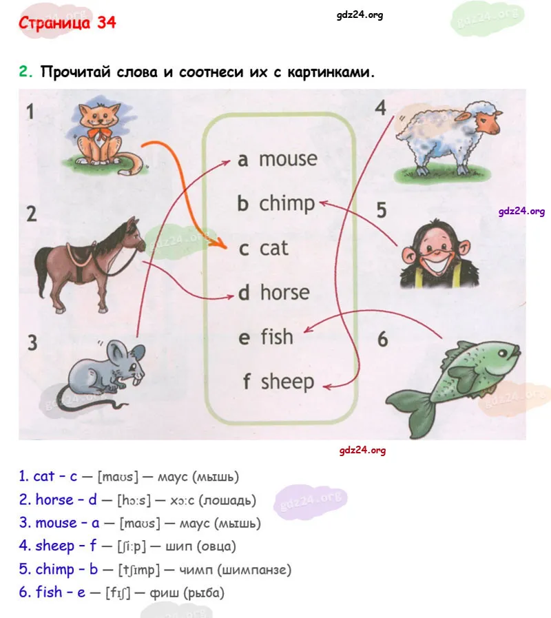 Подробные ответы к 2 заданию на 34 странице рабочей тетради Spotlight. Английский в фокусе. Н. И. Быкова, Д. Дули, М. Д. Поспелова и др. 2025 года ФГОС, 2 класс. 7. My Animals!