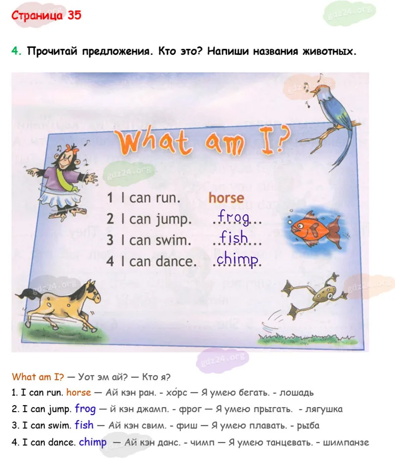 Подробные ответы к 4 заданию на 35 странице рабочей тетради Spotlight. Английский в фокусе. Н. И. Быкова, Д. Дули, М. Д. Поспелова и др. 2025 года ФГОС, 2 класс. 7. My Animals!