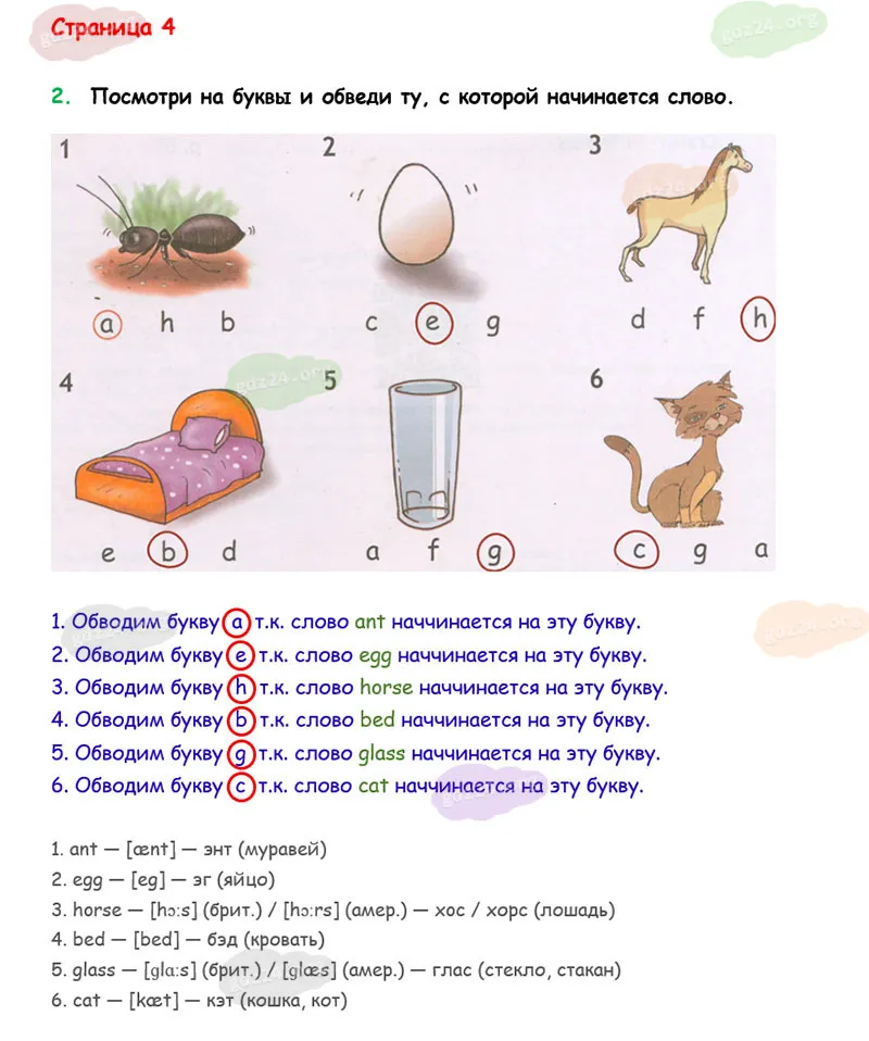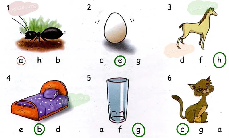 Посмотри на буквы и обведи ту, с которой начинается слово.
