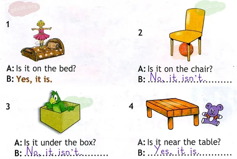 Где находятся игрушки? Посмотри на картинки и выбери правильный ответ из рамки.