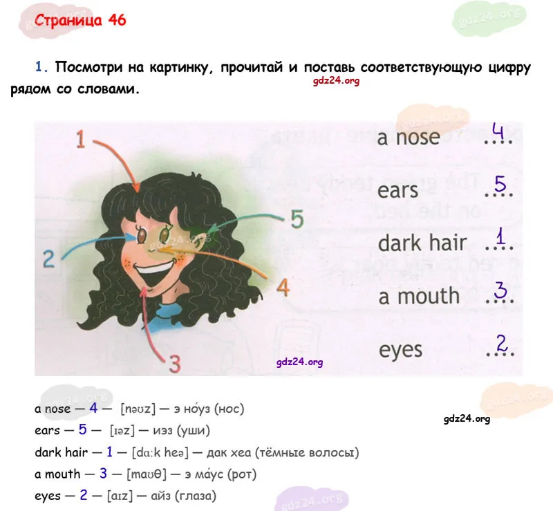 Посмотри на картинку, прочитай и поставь соответствующую цифру рядом со словами.