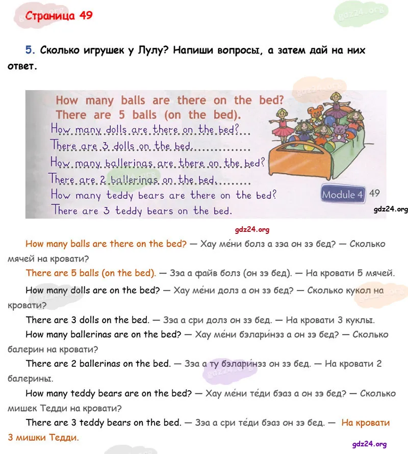 Сколько игрушек у Лулу? Напиши вопросы, а затем дай на них ответ.