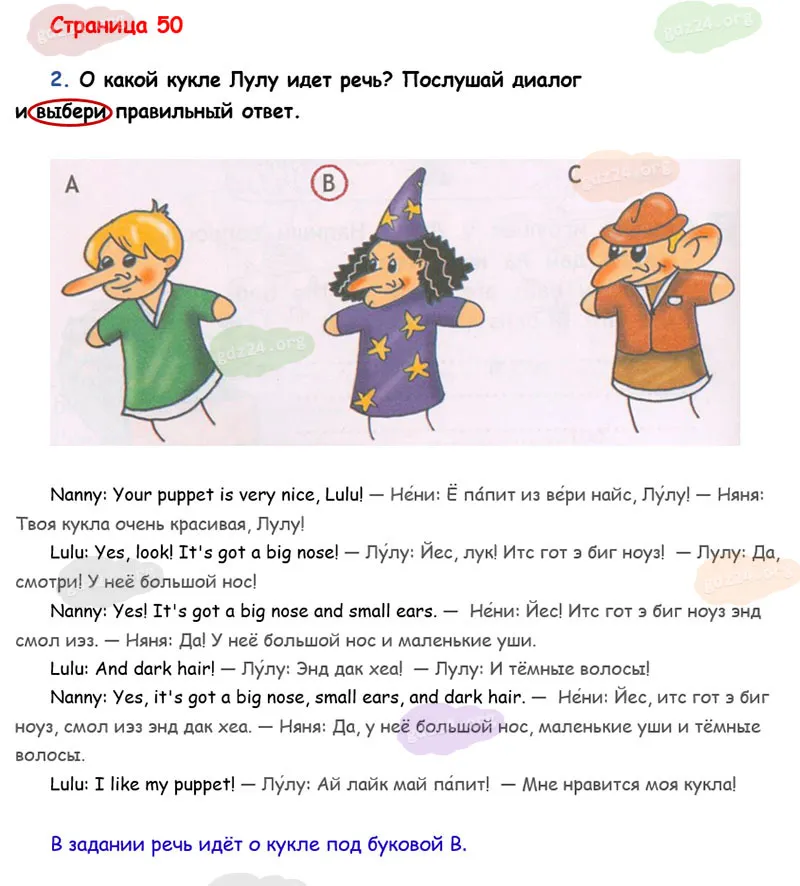 Подробные ответы к 2 заданию на 50 странице рабочей тетради Spotlight. Английский в фокусе. Н. И. Быкова, Д. Дули, М. Д. Поспелова и др. 2025 года ФГОС, 2 класс. I ❤️ English!