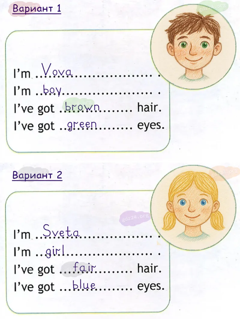 Закончи предложения: напиши о себе. Нарисуй себя или приклей свою фотографию.