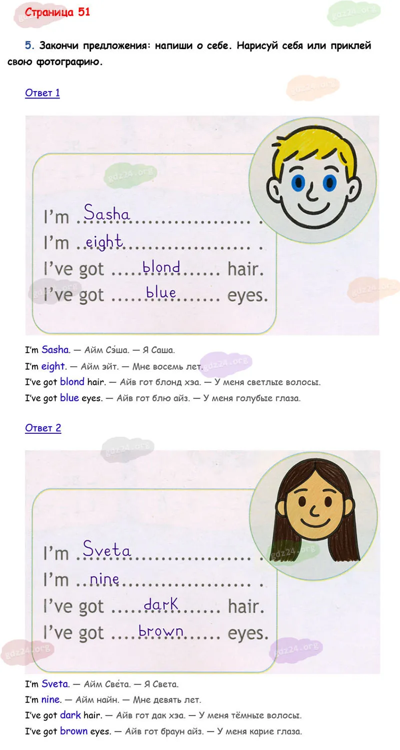 Подробные ответы к 5 заданию на 51 странице рабочей тетради Spotlight. Английский в фокусе. Н. И. Быкова, Д. Дули, М. Д. Поспелова и др. 2025 года ФГОС, 2 класс. I ❤️ English!