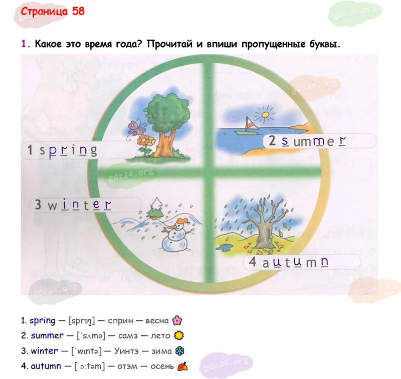 Какое это время года? Прочитай и впиши пропущенные буквы.