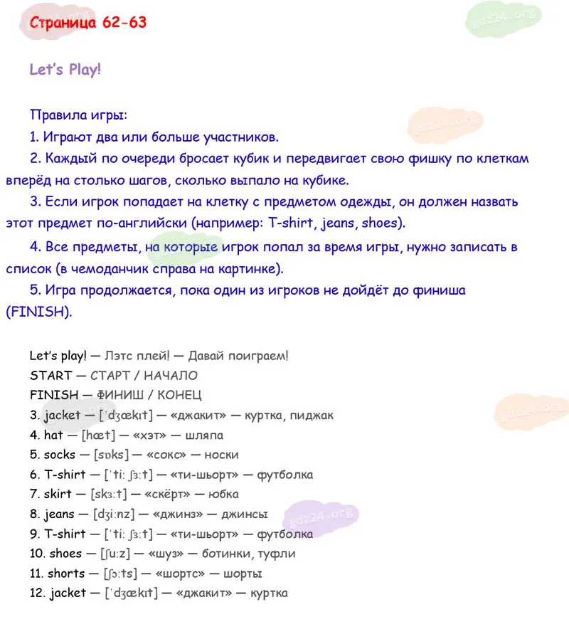 ГДЗ - ФГОС 2025 г. | ответ 2 | Страница 62-63 | Задание Let's Play