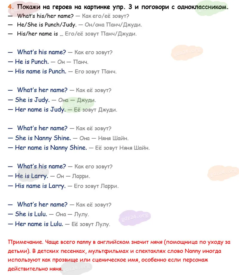 Покажи на героев на картинке упр. 3 и поговори с одноклассником.