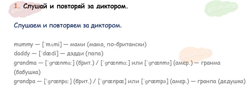 Подробные ответы к 1 заданию на 22 странице учебника Spotlight. Английский в фокусе. Н. И. Быкова, Д. Дули, М. Д. Поспелова и др. 2025 года ФГОС, 2 класс 1 часть. a. My Family!