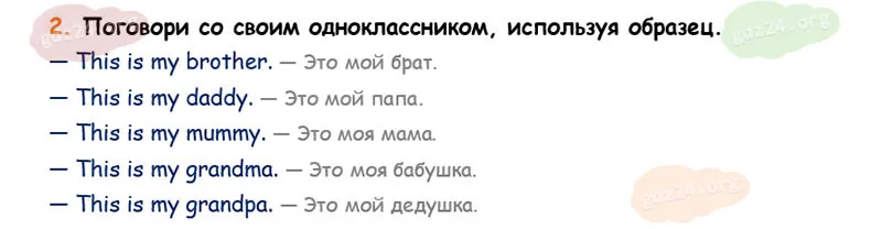 Подробные ответы к 2 заданию на 22 странице учебника Spotlight. Английский в фокусе. Н. И. Быкова, Д. Дули, М. Д. Поспелова и др. 2025 года ФГОС, 2 класс 1 часть. a. My Family!