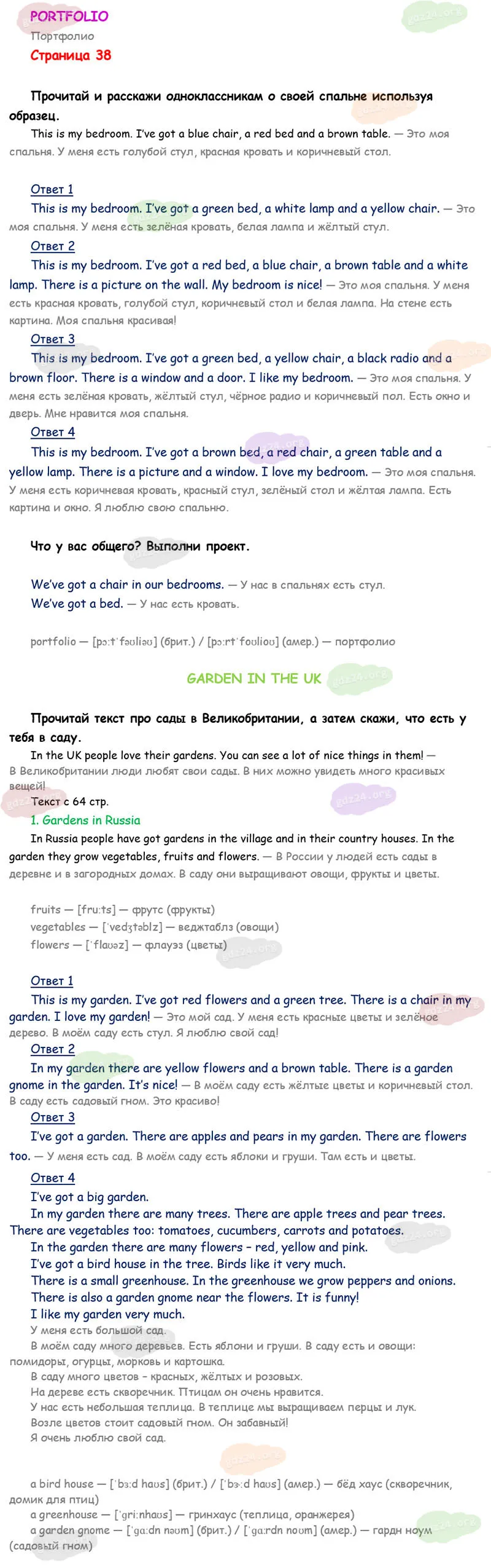 Подробные ответы к заданиям на 38 странице учебника Spotlight. Английский в фокусе. Н. И. Быкова, Д. Дули, М. Д. Поспелова и др. 2025 года ФГОС, 2 класс 1 часть. Portfolio