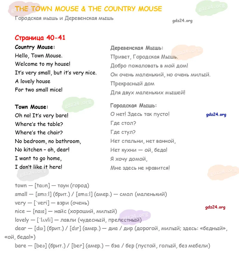 Подробные ответы к 1 заданию на 40-41 странице учебника Spotlight. Английский в фокусе. Н. И. Быкова, Д. Дули, М. Д. Поспелова и др. 2025 года ФГОС, 2 класс 1 часть. The Town Mouse & The Country Mouse