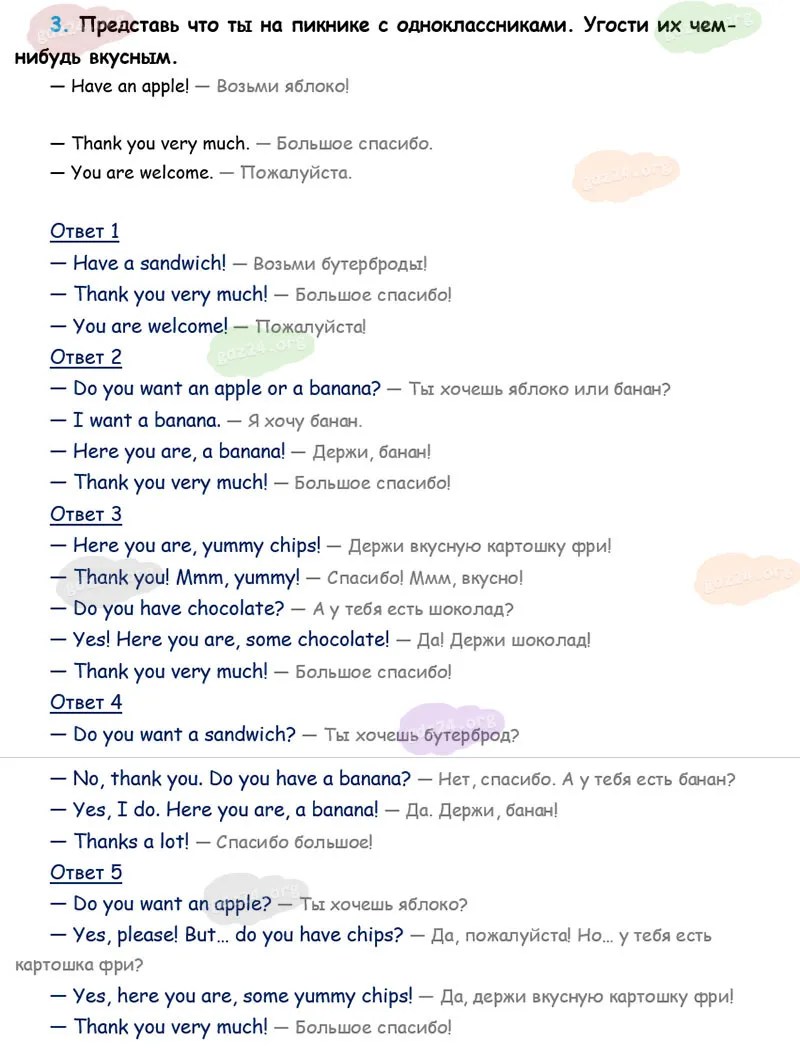 Представь, что ты на пикнике с одноклассниками. Угости их чем-нибудь вкусным.