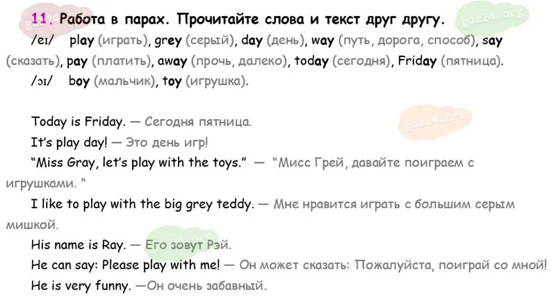 /eɪ/ play, grey, day, way, say, pay, away, today, Friday.