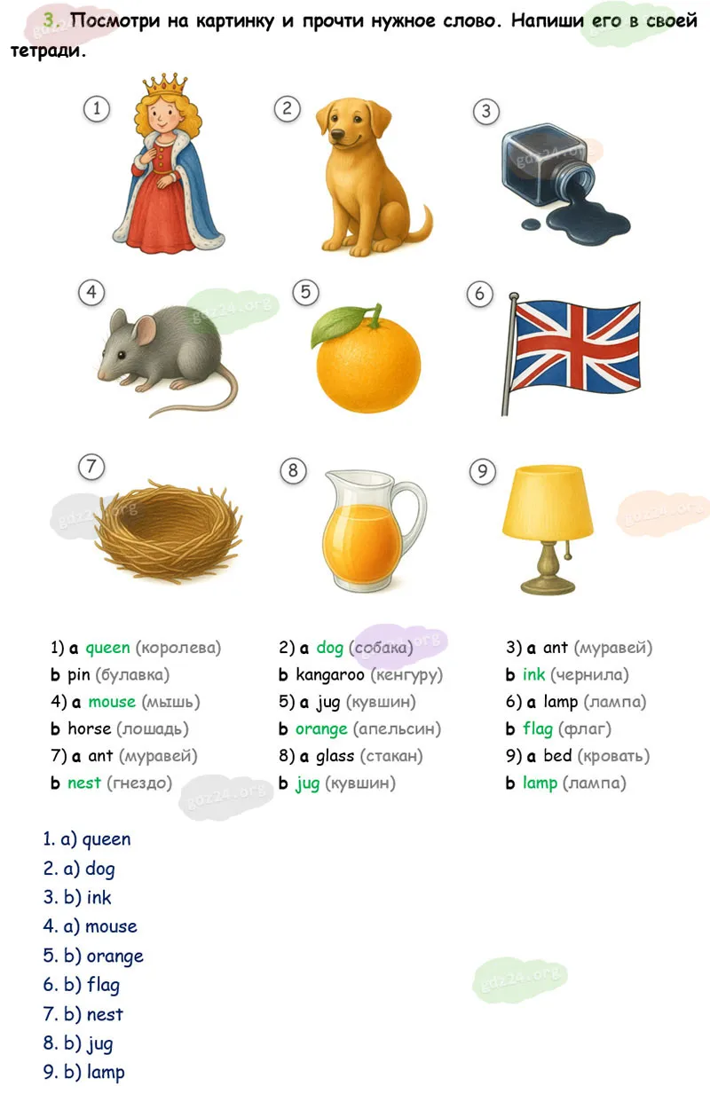 Посмотри на картинку и прочти нужное слово. Напиши его в своей тетради.