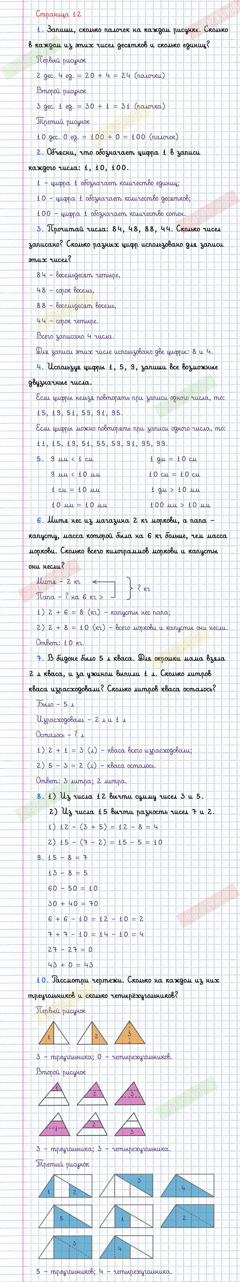 Подробные ответы к заданиям, расположенным на 12 странице 1 части учебника по математике авторов М.И. Моро, М.А. Бантова, Г.И. Бельтюкова для учащихся 2 класса.
