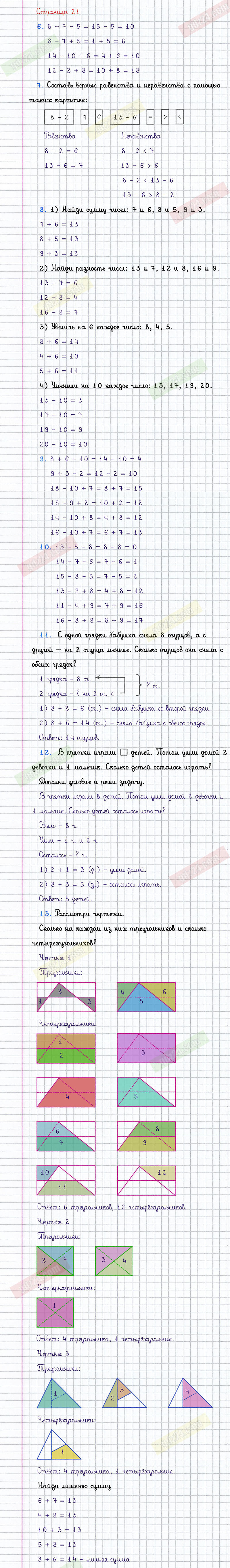 Подробные ответы к заданиям, расположенным на 21 странице 1 части учебника по математике авторов М.И. Моро, М.А. Бантова, Г.И. Бельтюкова для учащихся 2 класса.