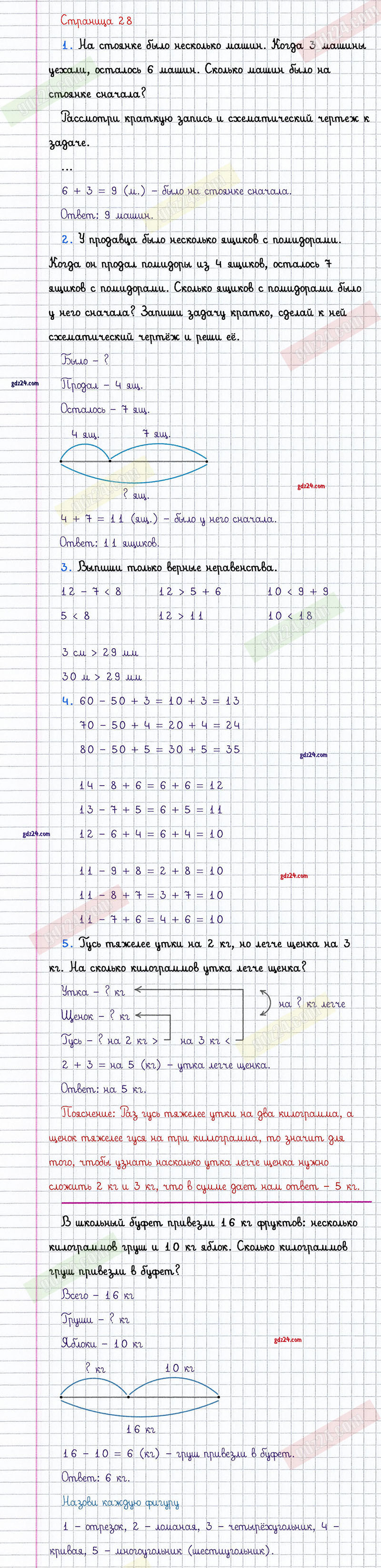 Подробные ответы к заданиям, расположенным на 28 странице 1 части учебника по математике авторов М.И. Моро, М.А. Бантова, Г.И. Бельтюкова для учащихся 2 класса.