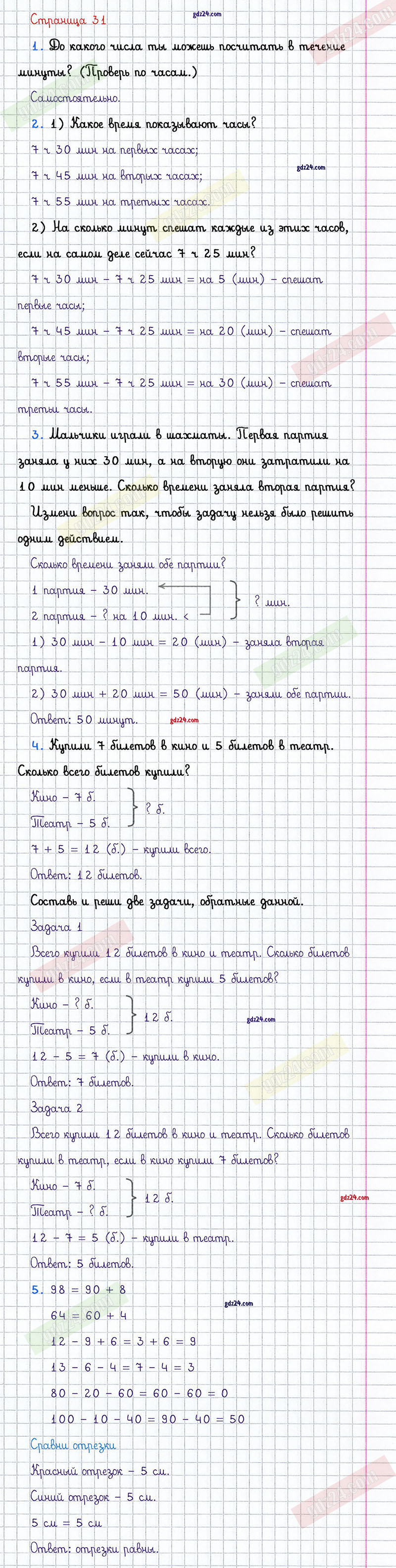 Подробные ответы к заданиям, расположенным на 31 странице 1 части учебника по математике авторов М.И. Моро, М.А. Бантова, Г.И. Бельтюкова для учащихся 2 класса.