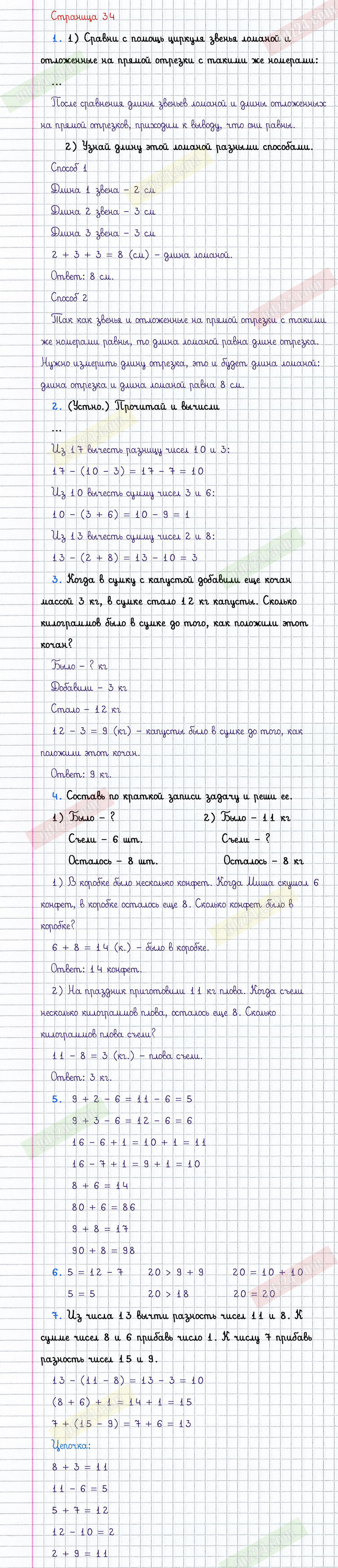 Подробные ответы к заданиям, расположенным на 34 странице 1 части учебника по математике авторов М.И. Моро, М.А. Бантова, Г.И. Бельтюкова для учащихся 2 класса.