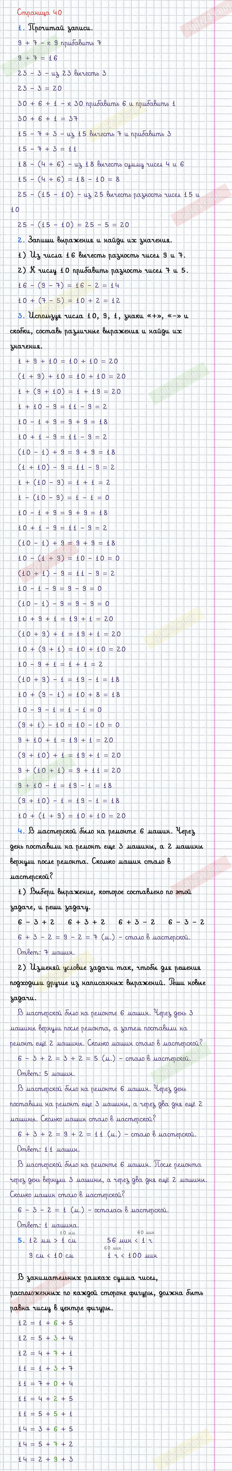 Подробные ответы к заданиям, расположенным на 40 странице 1 части учебника по математике авторов М.И. Моро, М.А. Бантова, Г.И. Бельтюкова для учащихся 2 класса.