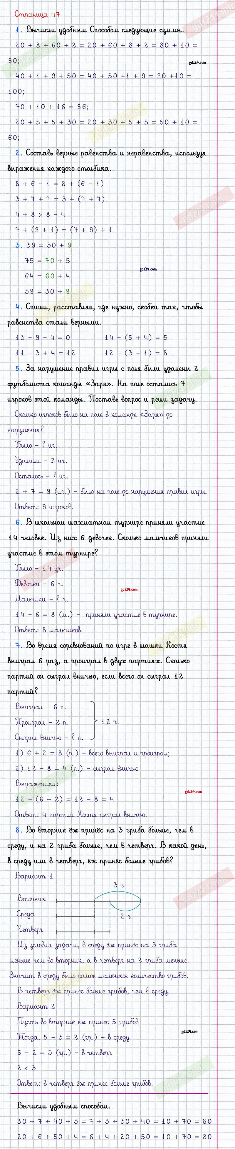 Подробные ответы к заданиям, расположенным на 47 странице 1 части учебника по математике авторов М.И. Моро, М.А. Бантова, Г.И. Бельтюкова для учащихся 2 класса.