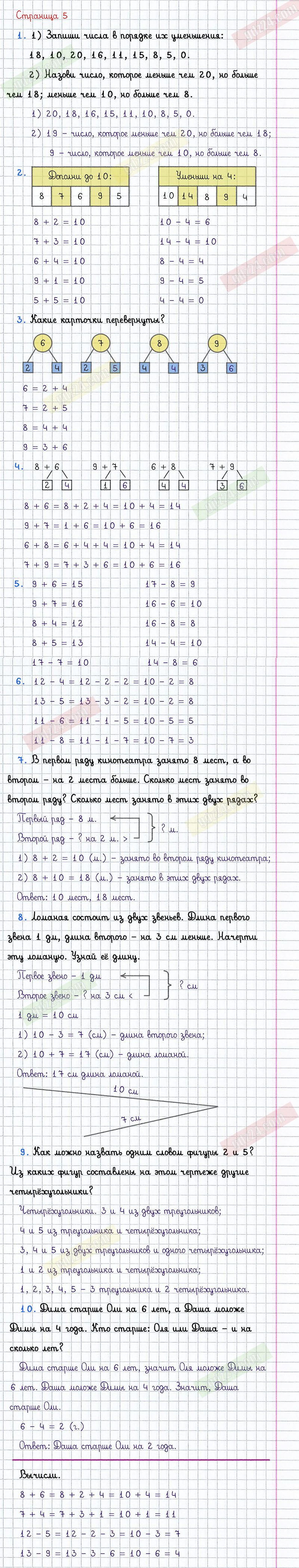 Подробные ответы к заданиям, расположенным на 5 странице 1 части учебника по математике авторов М.И. Моро, М.А. Бантова, Г.И. Бельтюкова для учащихся 2 класса.