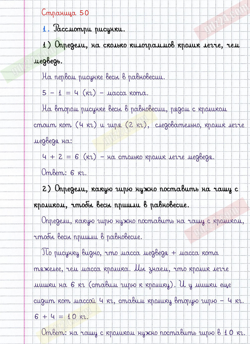 Подробные ответы к заданиям, расположенным на 50 странице 1 части учебника по математике авторов М.И. Моро, М.А. Бантова, Г.И. Бельтюкова для учащихся 2 класса.