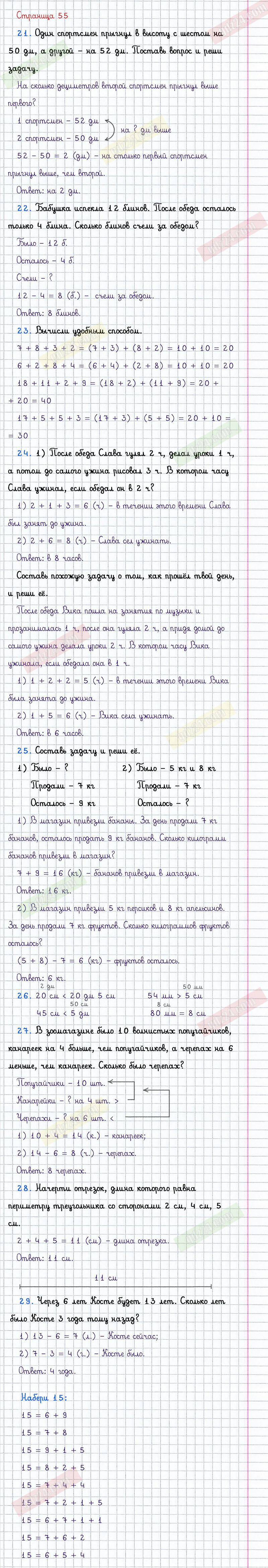 Подробные ответы к заданиям, расположенным на 55 странице 1 части учебника по математике авторов М.И. Моро, М.А. Бантова, Г.И. Бельтюкова для учащихся 2 класса.