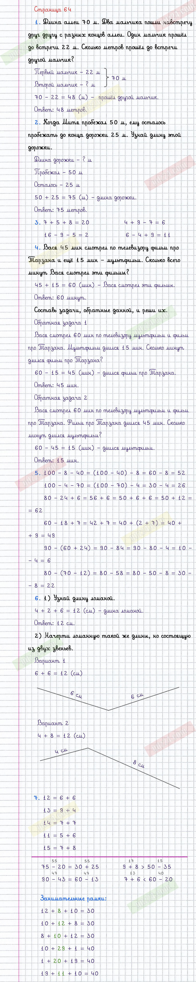 Подробные ответы к заданиям, расположенным на 64 странице 1 части учебника по математике авторов М.И. Моро, М.А. Бантова, Г.И. Бельтюкова для учащихся 2 класса.
