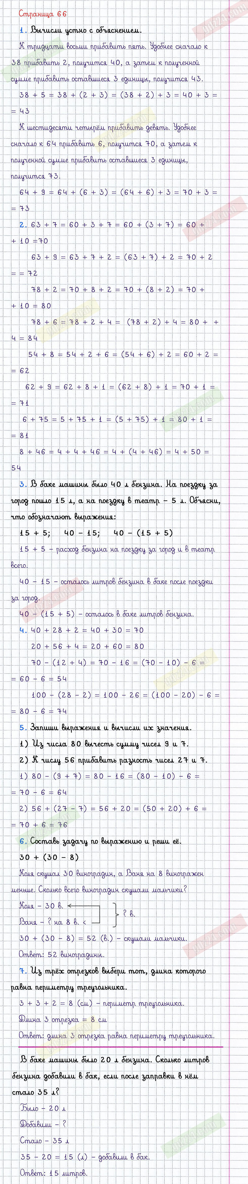 Подробные ответы к заданиям, расположенным на 66 странице 1 части учебника по математике авторов М.И. Моро, М.А. Бантова, Г.И. Бельтюкова для учащихся 2 класса.