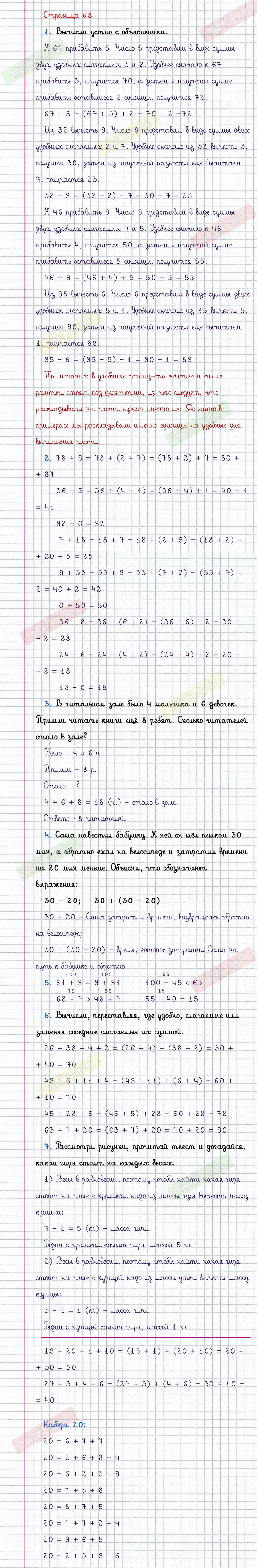 Подробные ответы к заданиям, расположенным на 68 странице 1 части учебника по математике авторов М.И. Моро, М.А. Бантова, Г.И. Бельтюкова для учащихся 2 класса.